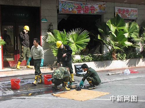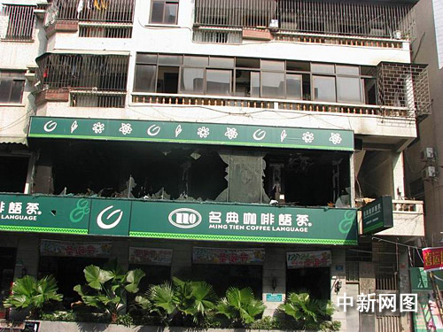 記者在現(xiàn)場看到,火災現(xiàn)場已被警方封鎖,甚至在距離現(xiàn)場數(shù)百米遠的路口警方也設置了警戒崗。發(fā)生火災的名典西餐廳一片狼藉,西餐廳二樓的玻璃墻已全部破碎,餐廳里的沙發(fā)、桌子大部分被燒壞。此次火災約三百三十平方米。