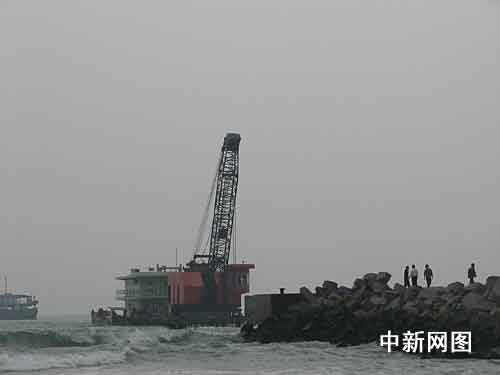 中新網(wǎng)陽江12月19日電(記者 索有為)經(jīng)過七個(gè)多月的緊張施工,“南海一號”專用臨時(shí)碼頭已經(jīng)順利完工。記者今天在現(xiàn)場看到,數(shù)米高的海浪拍打著呈“T”字形的海上碼頭,一些媒體記者陸陸續(xù)續(xù)來此踩點(diǎn),尋找拍攝“南海一號”登陸的最佳位置。
