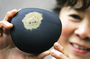 陳女士收藏的“火娃”頭像奇石 記者 孫須 攝
