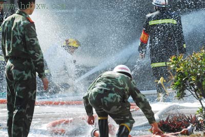 “動(dòng)作要快”、“水帶要鋪好”、“水槍要朝槽車四周射擊”……事畢15分鐘后,記者即趕到了火災(zāi)現(xiàn)場(chǎng)。一進(jìn)現(xiàn)場(chǎng),就聽到泉州市消防支隊(duì)陳建華支隊(duì)長(zhǎng)大著嗓門,發(fā)出一個(gè)又一個(gè)指令。