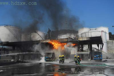 緊接著,10多名頭戴安全帽、身著便服的工人跑了出來(lái),他們打開了庫(kù)區(qū)里的消防栓,沖向槽車附近滅火。據(jù)消防支隊(duì)有關(guān)人士介紹,小張所說(shuō)的這些工人是港豐石化公司的專職消防隊(duì)員;馂(zāi)發(fā)生后,隊(duì)員們立即啟動(dòng)儲(chǔ)罐冷卻噴淋系統(tǒng),降低事發(fā)附近儲(chǔ)罐發(fā)生燃燒的可能。