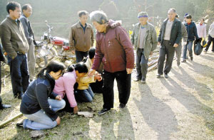 被農(nóng)婦何結(jié)釗砍死的5人的葬禮在2007年的最后一天舉行,而疑兇的家人則以下跪的方式面對死者家屬。記者采訪發(fā)現(xiàn),這場悲劇帶來的傷害,不管是對受害人家屬,還是對疑兇家人,都將會是一場無盡的痛,5條人命、3個家庭,一種難以用言語表達(dá)的傷害,究竟是誰的錯……