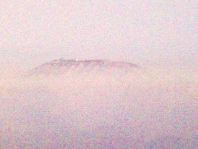 登上蘭山頂后,志愿者共同敲響了新年鐘聲,并在蘭山鐘院等待日出。由于時(shí)處清晨,蘭州城區(qū)被一層薄霧籠罩著,唯有潺潺的黃河在霧氣中忽隱忽現(xiàn)。恰在此時(shí),志愿者李建強(qiáng)突然發(fā)現(xiàn)蘭州市區(qū)的上空多了個(gè)小島。大家定睛一看,果然有一個(gè)小島漂浮在市區(qū)上空。隨行的志愿者趕快拍下了這一幕。在照片的中央,一個(gè)小島橫埂在上面,山尖上的日出慢慢透出了光亮。10余分鐘后,“小島”上的日出消失,蘭州市區(qū)又被霧氣籠罩,海市蜃樓慢慢消失。半個(gè)小時(shí)后,太陽(yáng)才從遠(yuǎn)處的山坳里露出了“臉”,將新年的第一屢陽(yáng)光撒向蘭州市區(qū)。