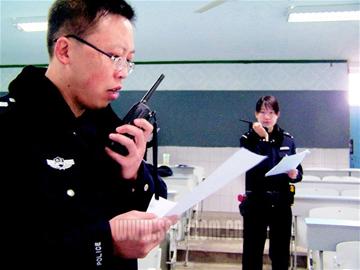 9時至11時,隊員2人一組,左手拿著數(shù)張全英文警情稿,右手拿對講機,用英文進行“實戰(zhàn)”通話。二名英語女教官不停地來回穿梭教室內(nèi)外,時不時對隊員們發(fā)音不準之處進行糾正和輔導。由于隊員們之間的通話和交流,均是英語,記者如聽“天書”,整個上午只聽懂他們每次說的最后一個單詞——over。