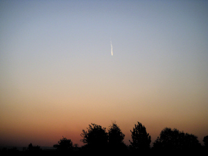 網(wǎng)友“20231”在帖子中回憶:他家住在離機(jī)場不遠(yuǎn)的地方,昨天早上7點(diǎn)40分,他打開窗簾,朝正東方向機(jī)場上空看去,突然看到空中有一個發(fā)亮的不明物體。由于距離遠(yuǎn),看不出不明物體是否在移動。它一直停留在空中,顏色逐漸變淡。用相機(jī)拍下來后大約過了5分鐘,物體消失了。從照片上看,它拖著一根長尾巴,被朝陽照得發(fā)亮,但看不清頭部是什么模樣。