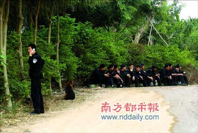 昨日上午9時許,珠海金鼎永豐錦石村口突然出現(xiàn)大批警車,約40名警察首先帶著警犬,展開大規(guī)模搜山行動,其后又在村內(nèi)挨家挨戶進行盤查。警方為何如此大動作?據(jù)知情者透露,是因為村后一工廠內(nèi)飼養(yǎng)的狗前日中午突然從附近山頭叼回一顆人頭。