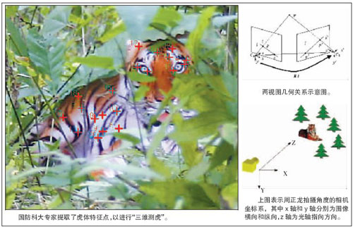 而國(guó)防科大的論文是從測(cè)量的角度進(jìn)行研究。根據(jù)攝像測(cè)量和計(jì)算機(jī)視覺(jué)理論,利用空間目標(biāo)在不同視角下的成像可以對(duì)目標(biāo)的結(jié)構(gòu)、位置進(jìn)行三維測(cè)量。該文利用華南虎的多幅圖像,根據(jù)透視成像關(guān)系進(jìn)行數(shù)學(xué)解算,獲得了華南虎的長(zhǎng)度、高度、寬度等測(cè)量數(shù)據(jù)。從這些實(shí)際測(cè)量數(shù)據(jù)對(duì)華南虎目標(biāo)是立體的還是平面的進(jìn)行判斷。