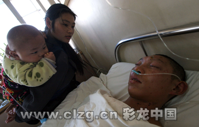 “我問他認不認得我,他說認得,他會沒事的。”昨天上午,29歲的郭春艷帶著1歲半的小女兒守在丈夫的病床邊,擔(dān)心不已。她的丈夫尹家敏13日凌晨在云天化國際化工股份有限公司三環(huán)分公司硫酸廠的爆炸事故中受傷,被送到了昆醫(yī)附二院燒傷科。