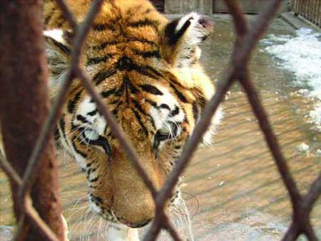 動物園的飼養(yǎng)員告訴王先生,這只虎得病了,患的是白內(nèi)障,而且一直沒有得到有效治療,現(xiàn)在兩只虎眼幾乎失明。加上這只老虎已經(jīng)十八九歲了(相當于人類年齡的70歲左右),身體每況愈下,如果不采取有效措施,這只國家一級保護動物可能活不了太久!鞍變(nèi)障是老年人常見的一般性眼病,現(xiàn)在診療技術(shù)都比較成熟,術(shù)后效果還比較好。能不能也給老虎做做手術(shù),根除了白內(nèi)障,延長一下老虎的壽命,如果不治療,讓它在眼病的折磨下死去,多可憐呀!蓖跸壬o記者打來電話。