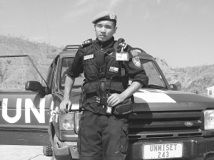 他今年36歲,曾兩次出任國際維和警察, 重復(fù)經(jīng)歷了貧窮、戰(zhàn)亂、恐怖和險(xiǎn)惡的生死考驗(yàn),出色地完成了維和任務(wù),榮獲兩枚聯(lián)合國和平勛章。他叫吳強(qiáng),畢業(yè)于吉林大學(xué)計(jì)算機(jī)系和法學(xué)院,獲計(jì)算機(jī)專業(yè)學(xué)士學(xué)位和法律專業(yè)碩士學(xué)位。國家一級運(yùn)動員。1996年參加公安工作,是我。ㄗⅲ杭质。┦孜粐H維和警察。目前任省公安廳辦公室副主任,指揮中心副指揮長。前不久吳強(qiáng)榮膺第18屆“中國十大杰出青年”的殊榮。