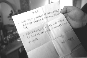 老張說,當初馬某找到他時哭了,說媳婦跑了七八個月,自己養(yǎng)活不了三個孩子,要將小女兒送人。他看小馬可憐,才答應幫著找個人家收養(yǎng)。老張還拿出了一份字據(jù):“1、因孩子的生父馬某與生母楊某離婚造成家庭無能力撫養(yǎng)孩子,所以托付給孩子未來的養(yǎng)父撫養(yǎng)。2、因孩子的生父馬某生活條件差,現(xiàn)孩子未來的養(yǎng)父支付給孩子生父馬某以前20個月的撫養(yǎng)費6000元錢。2007年11月5日。”