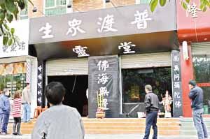 快餐店變了靈堂,樓上的住戶可遭殃了。“一連三天聽著這些聲音,怪嚇人的。屋里的人傍晚就走了,拉上了鐵門,可是錄音一直在放著,三更半夜聽著讓人毛骨悚然,睡不著覺。”住在樓上的陳小姐說。鄰近餐館的商鋪老板也稱生意受到影響。記者看到,路過的行人紛紛好奇地多看兩眼,然后就匆匆離去!安徽撚惺裁疵,設(shè)立靈堂來打擾居民,造成居民心里有壓力,這個(gè)餐館的老板太不厚道了。”住戶張小姐說。