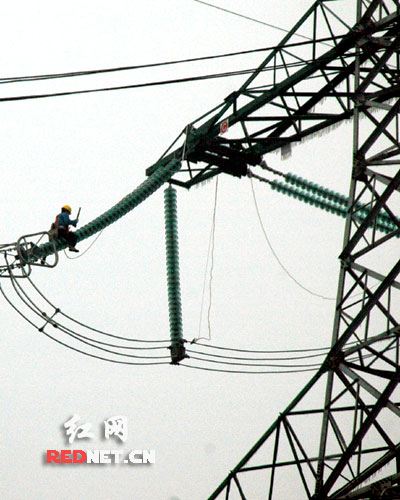 按照湖南送變電公司安排,送電三分公司于26日組織對該線路進(jìn)行人工除冰。當(dāng)時(shí),鐵塔上絕緣子串及導(dǎo)地線覆冰厚度大大超過設(shè)計(jì)標(biāo)準(zhǔn)。羅海文、羅長明、周景華三個(gè)人為一組,負(fù)責(zé)43號(hào)鐵塔的覆冰清除任務(wù)。