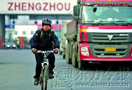 因買不到返鄉(xiāng)車票,20歲的鄭州籍大學(xué)生高富松便騎自行車從北京沿107國道返家,并于昨日安全到達(dá),耗時(shí)7天半。