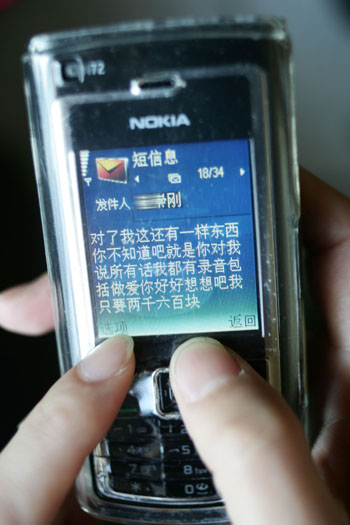 1月28日,麗娜的手機(jī)突然收到了一條短信:“我這有一樣你的東西,你不知道吧?就是你對(duì)我說(shuō)的所有話(huà)我都有錄音和視頻,包括咱們?cè)谝黄稹痢,你好好想想吧!我只?600塊錢(qián)。”麗娜看到這則短信后非常害怕,就打電話(huà)給王剛,希望他不要有過(guò)激行為,但王剛說(shuō)如果不給錢(qián),就讓全世界都知道麗娜的“丑事”。