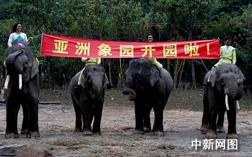 中新網(wǎng)廣州1月31日電(記者 陳國華)31日,廣州香江野生動物世界大象園開園。據(jù)了解,2007年尾至2008年初,短短的一個季度,該動物園喜獲5只亞洲小象,為了讓廣大游客能同時看到5只小象及象媽媽共同迎新年,香江為小象建了一個新家。