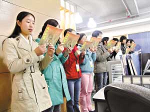 1月30日早上9時,東莞市東城區(qū)一家寫字樓內(nèi)傳出了朗朗的讀書聲。幾十名員工站在一起大聲誦讀《弟子規(guī)》。這一寫字樓里出現(xiàn)的奇特場景源于公司的一項規(guī)定:每天早上9時到9時15分,所有員工都要讀書15分鐘的國學(xué)經(jīng)典。