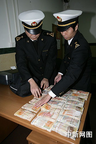 一月三十一日下午四時多, 二十八歲的內(nèi)地居民旅客謝某攜帶著簡便的行李隨著通關(guān)客流經(jīng)拱北口岸出境,未向海關(guān)作任何申報(bào)。海關(guān)關(guān)員察覺當(dāng)事人神色有異,遂請謝某將所攜帶的手提包過行李機(jī)檢查。海關(guān)人員在顯示器上發(fā)現(xiàn)手提包圖像異常,經(jīng)進(jìn)一步查驗(yàn),從謝某所攜帶的手提包內(nèi)查獲其超量攜帶港幣二百一十五點(diǎn)二萬元出境。