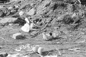 2月8日下午2時(shí)許,劉寨村第三村民小組張國(guó)華家的舊址已被全部推平,并且用新土覆蓋。但村邊的大楊樹(shù)有些已被炸得斷枝,地上也散落了不少衣服、文具盒及幾個(gè)布老虎玩具。