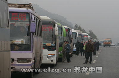 曲靖到勝境關(guān)高速是云南進(jìn)出貴州西北的要道,也是宣威到曲靖、昆明的必經(jīng)之路。前天晚上8點(diǎn)半,曲勝高速由于大面積結(jié)冰,不得不關(guān)閉。致使從前天開始到昨天的30多小時(shí)內(nèi),勞動(dòng)力輸出大縣宣威、富源的班車都沒法發(fā)車,很多急于趕回曲靖、昆明上班的人員都滯留在家鄉(xiāng)。
