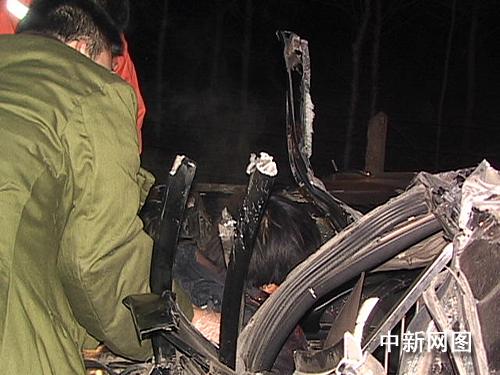 事故發(fā)生后,哈大高速公路交警大隊事故民警及安達消防大隊戰(zhàn)士及時趕到現(xiàn)場勘察營救被困人員。救援人員趕到現(xiàn)場時看到,一輛大慶牌照的紅旗黑色出租車騎在路基與公路之間,車后座的一名傷者已經(jīng)從車內(nèi)爬了出來。駕駛棚頂被撞得嚴重變形,機器蓋破損嚴重,司機被困在駕駛室內(nèi),司機滿臉是血神志不清。消防戰(zhàn)士使用金屬切割機將駕駛員棚頂破拆開,將被困人員救出,兩名傷者被“120”送往醫(yī)院救治。