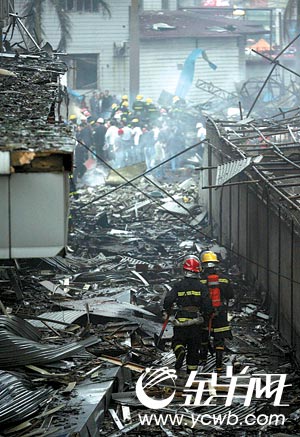 “轟”的一聲巨響,廣州黃埔區(qū)107國道南崗路段一汽修廠內(nèi)頓時升起蘑菇云,爆炸的威力令一公里之內(nèi)的房屋門窗和天花紛紛破碎掉落,爆炸點數(shù)十米范圍內(nèi)的建筑也被摧毀,從現(xiàn)場飛出的數(shù)塊汽車殘骸散落在距離現(xiàn)場幾百米遠的107國道和居民小區(qū)內(nèi)。周圍居民紛紛四散逃命。