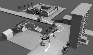 從監(jiān)獄門口到謝萬禮棄車逃跑地點(diǎn)大約有1500米距離。在軍校廣場東側(cè)的便道上,還有兩棵樹被連根撞斷的痕跡,一家網(wǎng)吧的收銀員證實(shí),吊車開到軍校廣場東北角后,繼續(xù)向南行駛,但連續(xù)撞了4輛轎車后沖上便道,撞斷了兩棵樹,隨后丟下車逃走了。