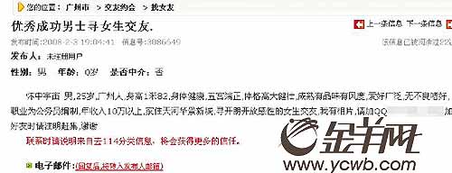 阿丹剛來廣州一年,在外漂泊的她一直希望能在這個(gè)城市扎根,尋找到自己的愛情和幸福。她說,一個(gè)多月前,自己無意中看見了呂××發(fā)布的交友信息。“我覺得對方條件挺不錯(cuò)的,身高1.82米,公務(wù)員編制(銀行系統(tǒng)的員工并非公務(wù)員。編者注),年收入10萬以上。”阿丹在加了呂××的QQ后,對方很快就發(fā)了自己的相片過來,“長得還挺帥”,阿丹稱,呂××給自己的第一印象挺不錯(cuò)。