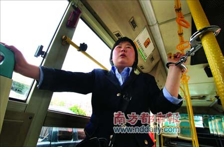 亮出手銬鎖住女售票員