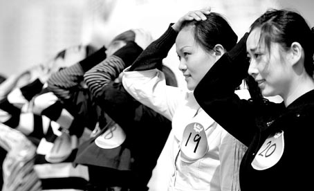 這次進行的是首輪淘汰,兩天下來,近5000名選手只有574人有資格進入下一關(guān)進行PK,淘汰率高達90%!斑@只是開始,接下來的篩選會更嚴格!迸硐壬f,選手要想當(dāng)上空姐,還有7關(guān)要闖。