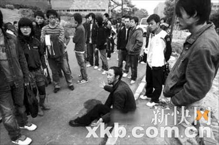 丁:首先,這是一種自我保護(hù),F(xiàn)場盡管打人者很兇,但是有眾多學(xué)生保護(hù)我。保衛(wèi)處的人想把我拖上電瓶車,帶到辦公室,我擔(dān)心受到更大的傷害。第二,我打電話報(bào)警了,我希望警方來現(xiàn)場處理,但遺憾的是,警方到了學(xué)校后并沒有到我報(bào)警的現(xiàn)場,而是到保衛(wèi)處辦公室,過了一個(gè)小時(shí)才到現(xiàn)場。第三,我打電話給朋友,等朋友來接我去醫(yī)院。
