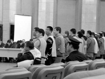 在沈陽市中級(jí)人民法院1號(hào)大法庭,吳寧和17名涉黑團(tuán)伙成員同庭受審。