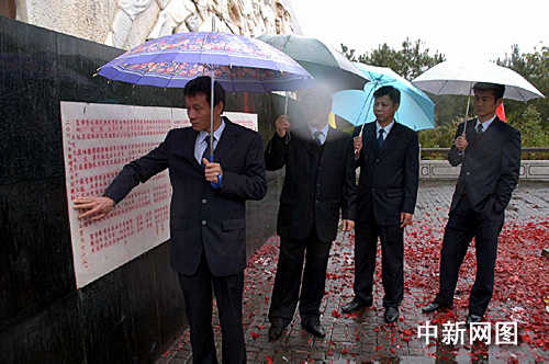 中新網韶關4月2日電(馮昶 李凌 鐘俊鋒 莫沖海)4月2日,陰雨綿綿中,包括縣黨政軍主要官員在內的始興縣各界人士一千多人,聚集在廣東始興縣丹鳳山革命烈士陵園,祭奠革命先烈,緬懷今年初在抗冰復電戰(zhàn)斗中因公殉職的劉煥松烈士。