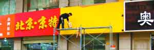 牌匾的位置也要統(tǒng)一:“應(yīng)設(shè)置在一層門楣以上,二層窗戶線以下”,“上下一條線,伸出一個(gè)面,距地一樣高”。