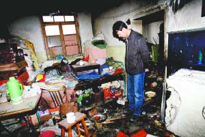 昨日7時(shí)許,記者在事發(fā)現(xiàn)場看到,發(fā)生汽油爆燃的平房分為兩間,墻壁和桌面上到處是焦黑的熏痕。平房孤零零立在一片拆遷廢墟之上,周圍只零星散布著其他幾棟平房。