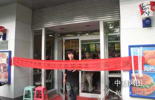 在派出所3次出警無(wú)效下,憤怒的陳女士做出了在肯德基店門口 拉橫幅攔顧客的舉動(dòng)。而肯德基方面更是以鎖住店門把陳女士連同當(dāng)時(shí)還在就餐的10幾名顧客一起困在了店堂里。時(shí)間長(zhǎng)達(dá)一個(gè)多小時(shí)。最后還是在圍觀群眾的憤怒聲中才打開(kāi)店門。