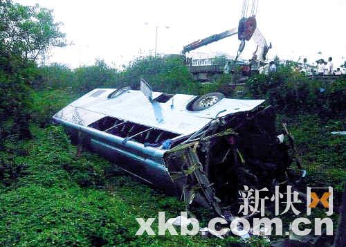 昨日上午,一輛粵港直通大巴從廣州中國大酒店出發(fā),經(jīng)廣深高速前往香港灣仔,9時(shí)13分在東莞厚街白濠路段,與一輛貨柜車追尾后失控,撞破路邊護(hù)欄墜入十多米下的排水溝,車上26名乘客不同程度受傷,其中部分是剛參加完廣交會(huì)的外籍客商,大巴司機(jī)麥某重傷后送院搶救,于下午5時(shí)不治身亡。受事故影響,該路段交通堵塞4個(gè)多小時(shí),被堵的車龍長(zhǎng)達(dá)5公里。經(jīng)現(xiàn)場(chǎng)勘查,初步懷疑大巴車速過快導(dǎo)致車禍。
