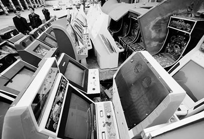 3月5日晚9時多,電玩城被江干區(qū)公安分局治安大隊數(shù)十名民警包圍,20名賭客來不及逃走,全被堵在現(xiàn)場。