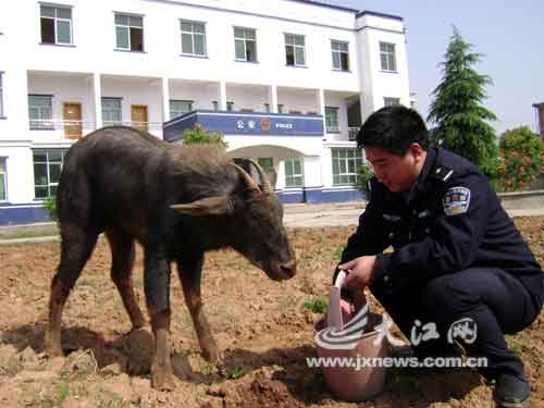 昨日清晨5時許,都昌縣中館鎮(zhèn)雙橋村一村民剛打開家門,發(fā)現(xiàn)門前有一只黑色“怪物”經(jīng)過。這只“怪物”身體和蹄子像水牛,頭部則像羊,但棱角很短小。