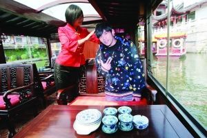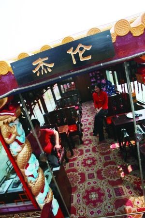 “杰倫號(hào)”上最特別的就是一幅與杰倫同比例的大幅紙質(zhì)模特,笑容滿面地坐在原來(lái)杰倫坐的位置上,前面的茶幾上還放著杰倫品嘗過(guò)的狀元豆、雨花茶。據(jù)稱(chēng),這個(gè)“模特”可以供游人照相。
