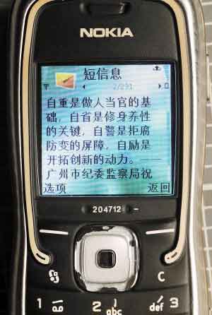4月30日,廣州市的市管干部張先生收到一條來(lái)自廣州市紀(jì)委的手機(jī)短信:“自重是做人當(dāng)官的基礎(chǔ),自省是修身養(yǎng)性的關(guān)鍵,自警是拒腐防變的屏障,自勵(lì)是開(kāi)拓創(chuàng)新的動(dòng)力!倍绦沤Y(jié)尾還有紀(jì)檢監(jiān)察部門送上的節(jié)日祝福。張先生感到,紀(jì)檢部門的廉政文化教育方式正在發(fā)生變化,“更溫馨貼近了!”