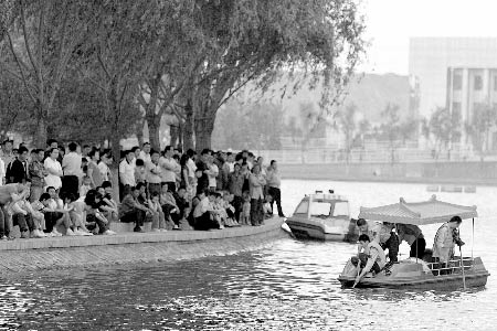 5月3日中午12時35分許,鄭州市特巡警二大隊接警,稱一小孩掉進帝湖了。