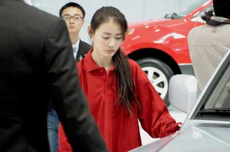 勞動(dòng)讓紅衣MM在眾多車模中突圍而出。