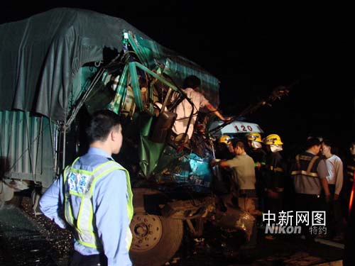 京珠高速韶關(guān)境內(nèi)兩大貨車相撞3人受傷(圖)