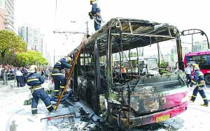 那站下車的人多。上海工業(yè)大學(xué)的張怡幾乎是被擠下去的。走了兩步,她突然聽到后面人聲嘈雜,回頭看,842路燒了起來。