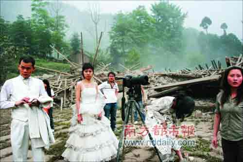汶川地震以來,不斷有災區(qū)的網(wǎng)友找到上網(wǎng)途徑,講述他們慘痛經(jīng)歷。前天,一組地震瞬間拍下的婚紗照在網(wǎng)上出現(xiàn),讓觀者如同一起經(jīng)歷了那個驚心動魄的瞬間。