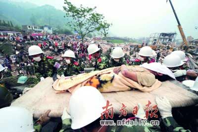 “我一定要找到家里人,死也要死到一起!痹诰d陽(yáng)市開出租車司機(jī)胡女士說(shuō)。出事后,她開車前往北川找她的愛人。當(dāng)天下午5點(diǎn)多,她趕到時(shí)小縣城已面目全非。胡女士徒步來(lái)到愛人上班的新城區(qū),在廢墟上大聲叫著丈夫的名字。終于,丈夫有了回應(yīng):“我在這里,背上有塊大石頭!”胡女士蹲下來(lái)說(shuō):“不要怕,很快有人來(lái)救我們了!睘榱俗寪廴瞬灰?yàn)榭只藕褪а^(guò)多昏睡過(guò)去,胡女士跪在地上和愛人談起往事,不斷鼓勵(lì)、安慰他。半小時(shí)后,巡邏人員發(fā)現(xiàn)他們,胡的愛人獲救。而胡女士本人,則因?yàn)殚L(zhǎng)時(shí)間跪在一塊碎玻璃上,被割掉一大塊肉。(作者:記者胡亞柱張蜀梅)