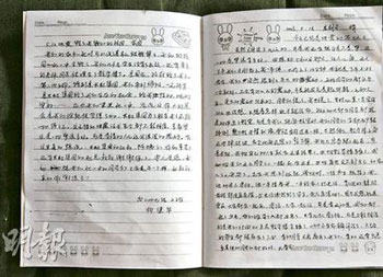 據(jù)香港《明報》報道,“沒有課本,沒有書桌,我們什么也沒有!闭鸷蟮谄咛,健華和逾千名幸存同學坐在紙皮上,用大腿墊起日記本,用中文記錄著她們的恐怖往事,用英文展望著北川的美好將來。