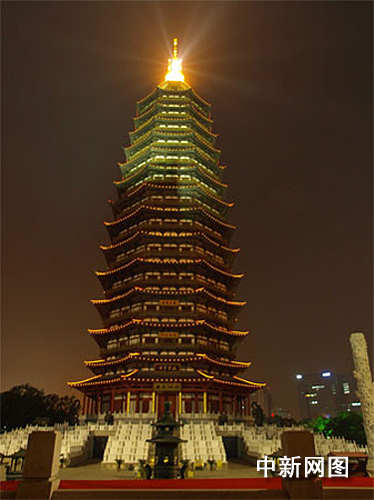常州天寧寶塔通過燈光的變化,化身一支巨大的蠟燭,點(diǎn)亮星空