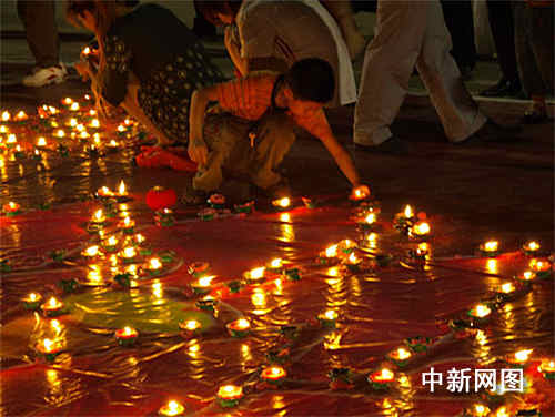 在為期三天的的祈;顒(dòng)中,來自四面八方的數(shù)萬市民自發(fā)的手捧蓮花蠟燭,按佛教儀式捧燭繞塔為受災(zāi)的同胞消災(zāi)祈福。人們在天寧寶塔前,擺出一個(gè)又一個(gè)的心型圖案,為遇難的同胞祭祀,并紛紛為災(zāi)區(qū)捐款。